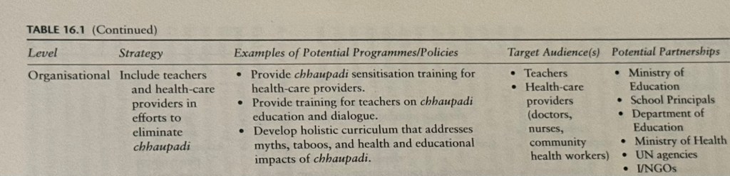 There’s a brief statement in schoolbooks stating that “…women and girls should stay outside the home during menstruation.” It’s not just a gender discrimination bias but an inequality and inequity to health access in a low-income country. “The law was enacted in late December 2019 with the case of Parbati Buda Rawat.”