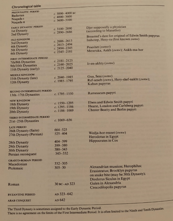 This title appears 150 times in tomb biographies, graffiti, stelae, and papyri dating from the Fourth Dynasty (2649–2513 BC) to the Twenty-seventh Dynasty (525–404 BCE). This is linguistically similar to the Egyptian word for pain (swny.t) and for affliction (swn). One of the identifying features of the swnw in the medical papyri is the phrase “placing the hand.” This may have been a way of diagnosing and/or was similar to “the laying on of hands” as we say today as a means of healing. After the Twenty-seventh Dynasty, when Egypt came under Persian rule, swnwcame to mean both doctor and embalmer. Furthermore, during the Ptolemaic Period, swnw could mean embalmer as well. Previously, during the Pharaonic period, there may have been limited interactions between physicians and embalmers. Egyptologist Kent Weeks recommends that a more accurate translation of swnw should be “one who treats the ailments of the upper classes,” which reflects the idea that most swnw had connections with the royal court rather than treating ordinary people.