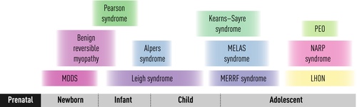 A clinical classification was the first rational classification of mitochondrial disease, since canonical syndromes with particular constellations of symptoms and signs had been recognized for decades before their genetic basis was understood [4–9]. A selection of these syndromes is described below, according to age at presentation (Fig. 1), and an ‘A to Z’ of mitochondrial syndromes is provided in Table 1. However, it is important to remember the enormous clinical heterogeneity of mitochondrial disease (Fig. 2) and that most children affected by mitochondrial disease do not have a classical syndromic presentation, particularly at the earliest stages of their disease when only a single organ may be involved.