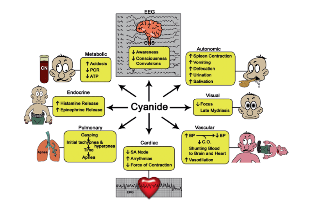 • Cyanide resides mainly in erythrocytes rather than plasma.