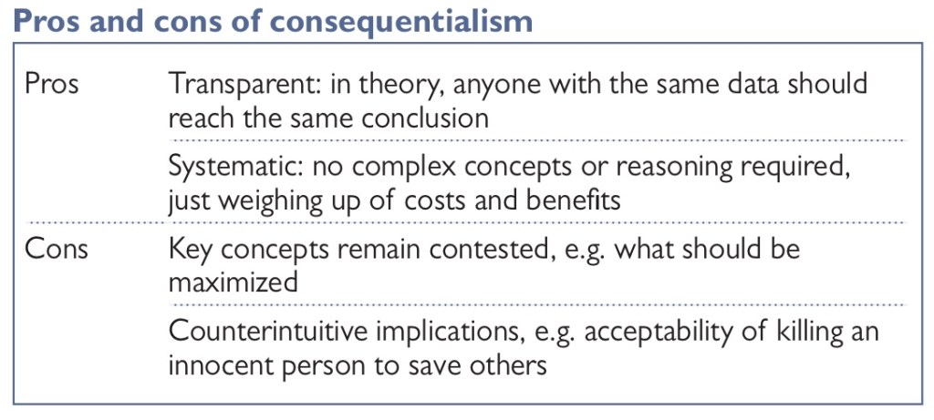 Consequentialism poses challenges for the doctor– patient relationship since it explicitly requires doctors to consider the greater good— not just the interests of a specific patient. However, in the public health context, consequentialism has an important role to play. Measures such as cervical screening tend to be evaluated on the basis of how many lives they save, a broadly consequentialist approach. For example, the National Institute for Health and Clinical Excellence (NICE) uses the quality- adjusted life year (QALY) to determine whether healthcare interventions can be justified or not on the basis of cost per (quality- adjusted) year.