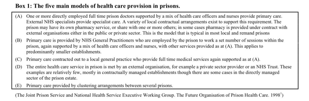 Models of health care provision in prisons
